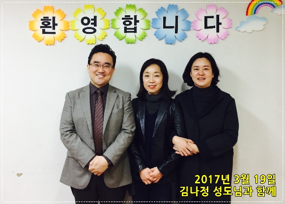 2017년 3월 19일 이성화 집사님의 인도로 김나정 성도님께서 등록하셨습니다.