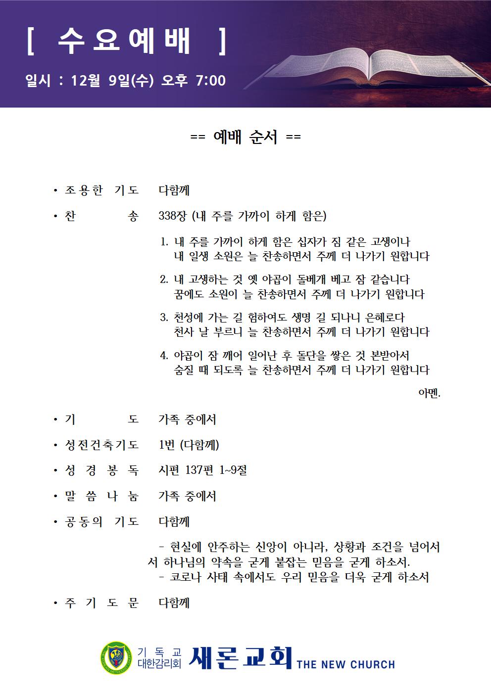 2020년 12월 9일 수요예배 가정예배문