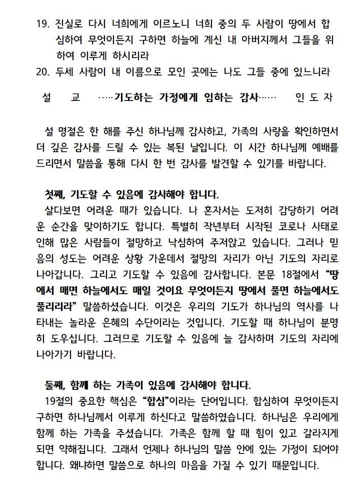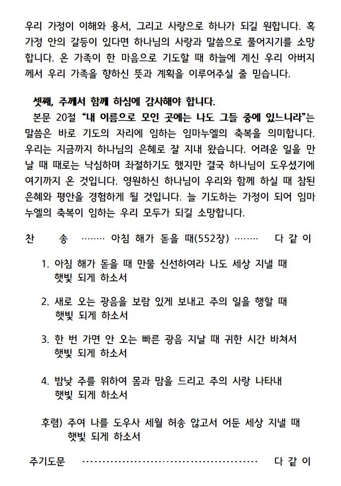 2021년 2월 10일 수요예배 가정예배문