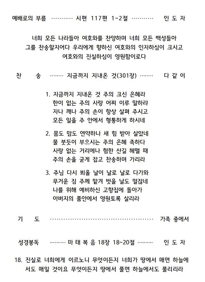 2021년 2월 7일 주일오후예배 가정예배문