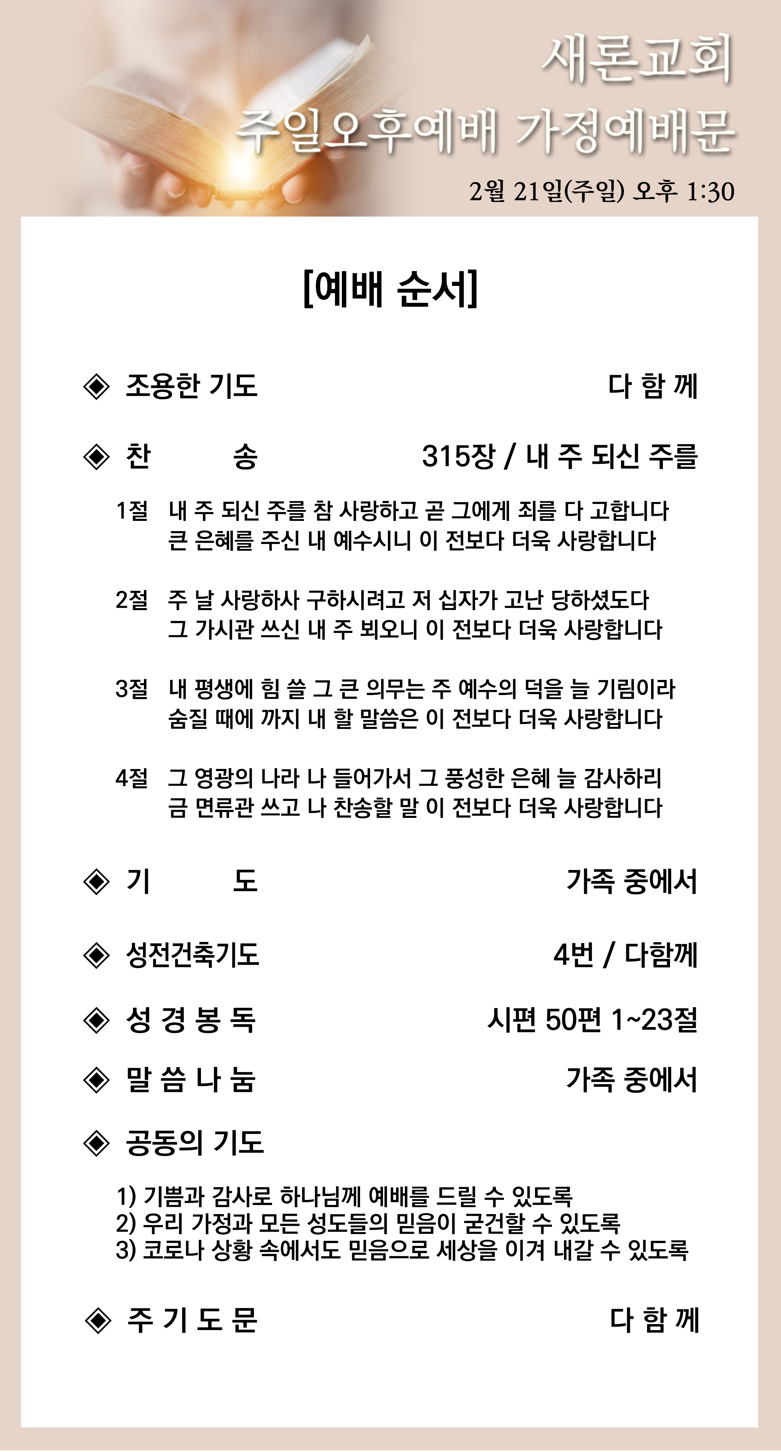 2021년 2월 21일 주일오후예배 가정예배문