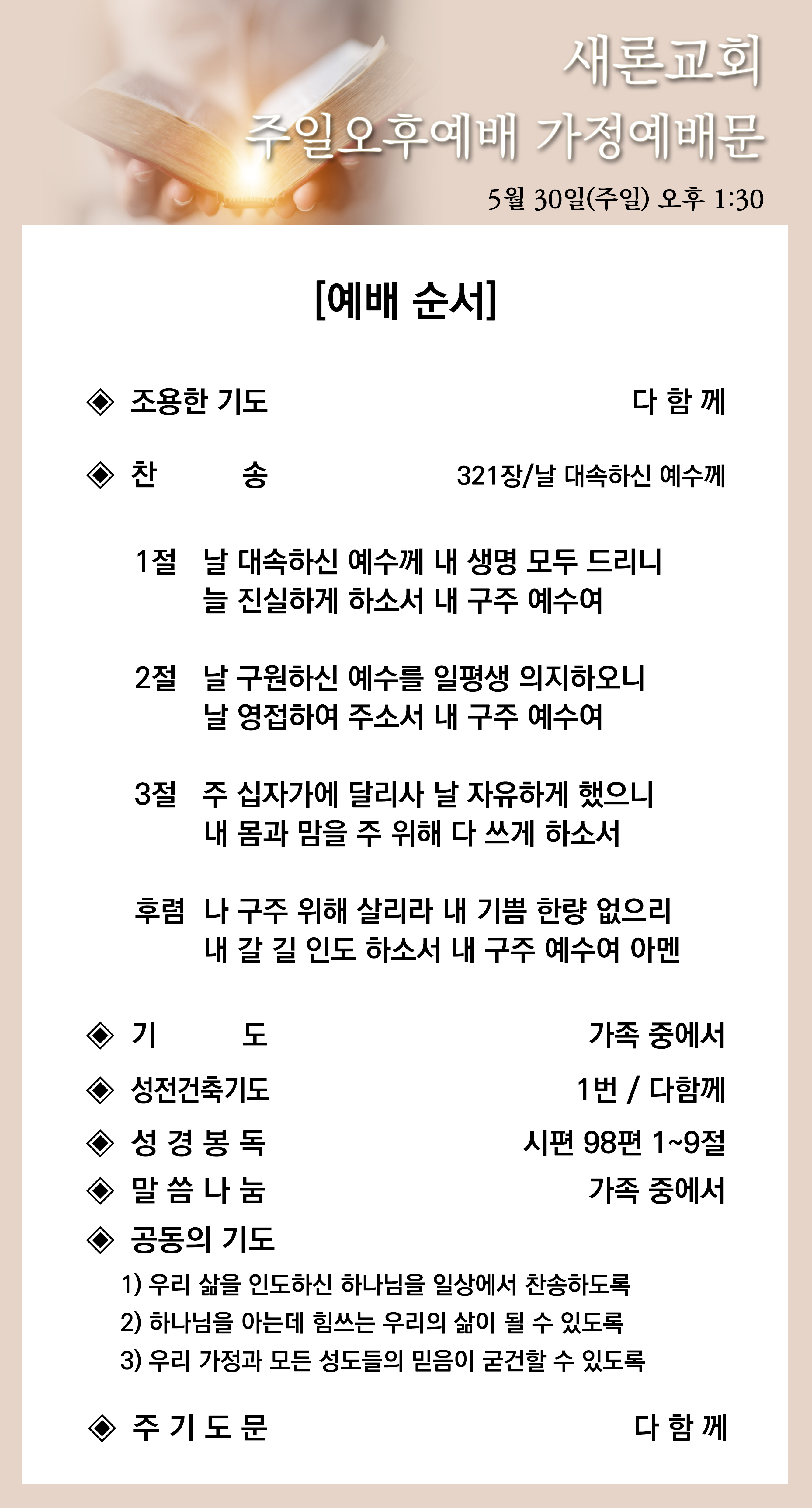 2021년 5월 30일 주일오후예배 가정예배문