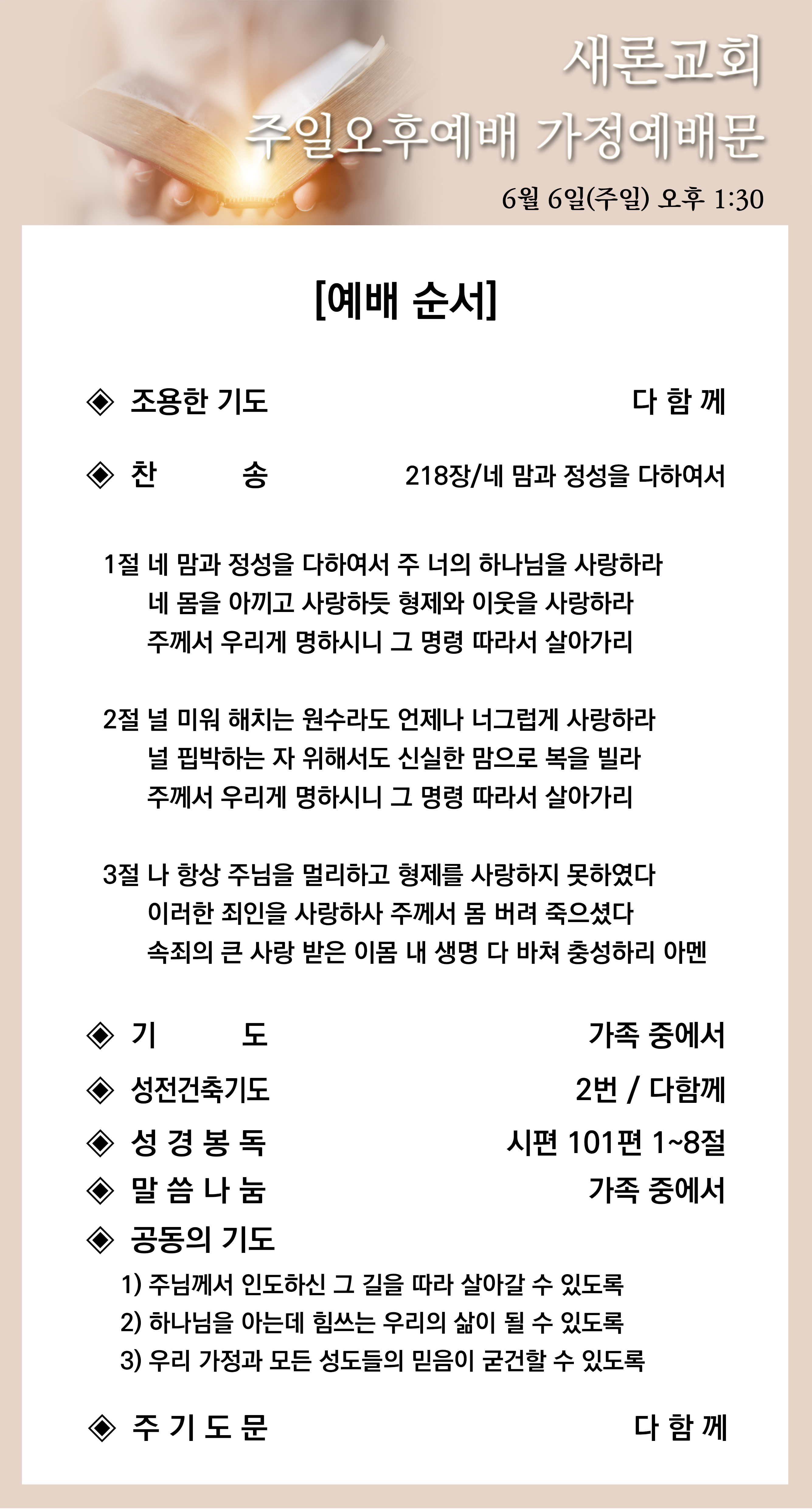 2021년 6월 13일 주일오후예배 가정예배문