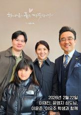 이재진 성도님, 윤영지 성도님, 이윤준, 이유주 학생